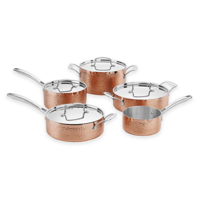 Cuisinart Tri-ply Hammered Copper 8-Piece Cookware Set ... from hip2save.com Though there are many contenders when reading copper cookware reviews, the best copper cookware overall is the mauviel m'heritage copper cookware. People love this cookware set due to its elegant finish and functionality. Lagostina martellata hammered copper 18/10 stainless steel cookware set. Cuisinart 10pc tri ply cooper cookware set. I have a stainless steel pan that i bought at target that i use more than these because it still looks nice. The set consists of 12 pieces. Induction ready and dishwasher lagostina martellata hammered copper cookware features the highest grade stainless that will ensure you maintain the flavors and are great for searing. The core is aluminum, with a stainless steel interior and copper exterior.